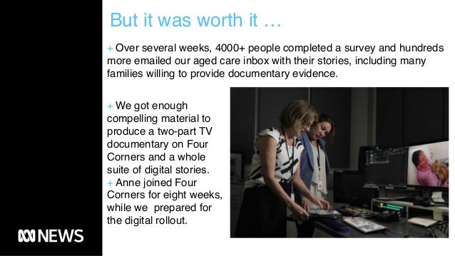 Abc journalist anne connolly wins humans rights awards for four corners aged care investigation published on december 17, 2019. Four corners details shocking cases of abuse and premature deaths in. I was a personal carer in an aged care facility and i'm speaking out because people need to know what it's really like in a nursing home. aged care worker, nsw